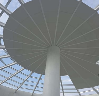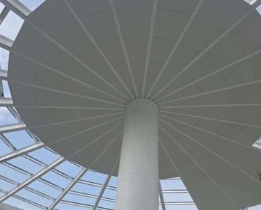 We successfully completed the fabrication and installation of a bespoke architectural steel canopy featuring a radial roof design supported by a central structural column. The project showcases precision engineering, combining both structural integrity and modern architectural aesthetics.