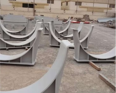 Each unit was engineered to provide optimal load distribution and structural stability for large-diameter pipelines and cylindrical equipment. The saddles were fabricated using high-grade structural steel, incorporating reinforced ribs and base plates to ensure strength, durability, and long service life under demanding operating conditions.